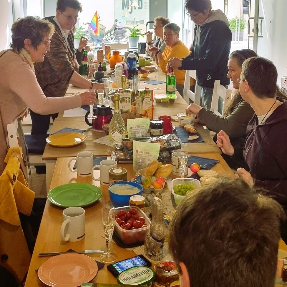 Erstes Osterfrühstück der LesLie-Frauen im neuen queeren Zentrum „Queers an der Niers e.V.“